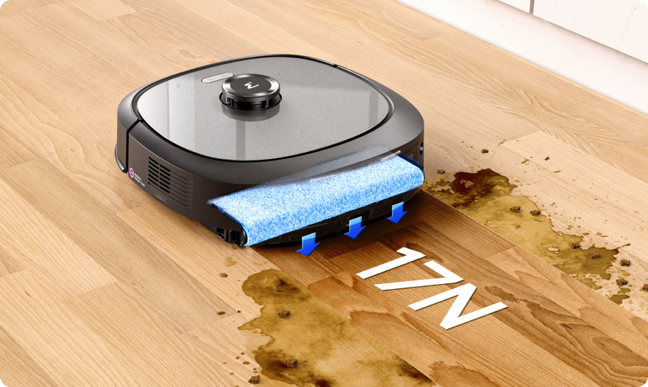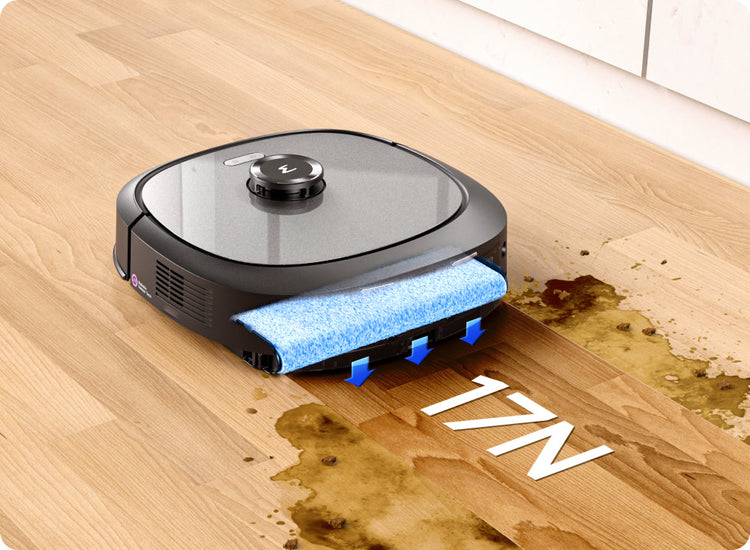 Skrubber gulv med robust 17N nedadgående trykk for å fjerne gjenstridig smuss og søl grundig.