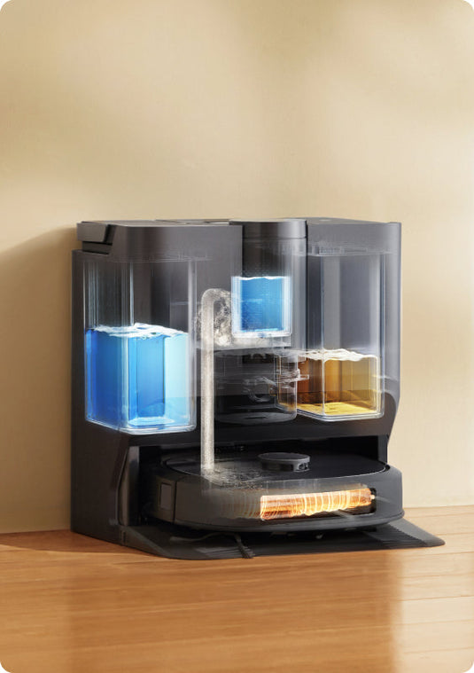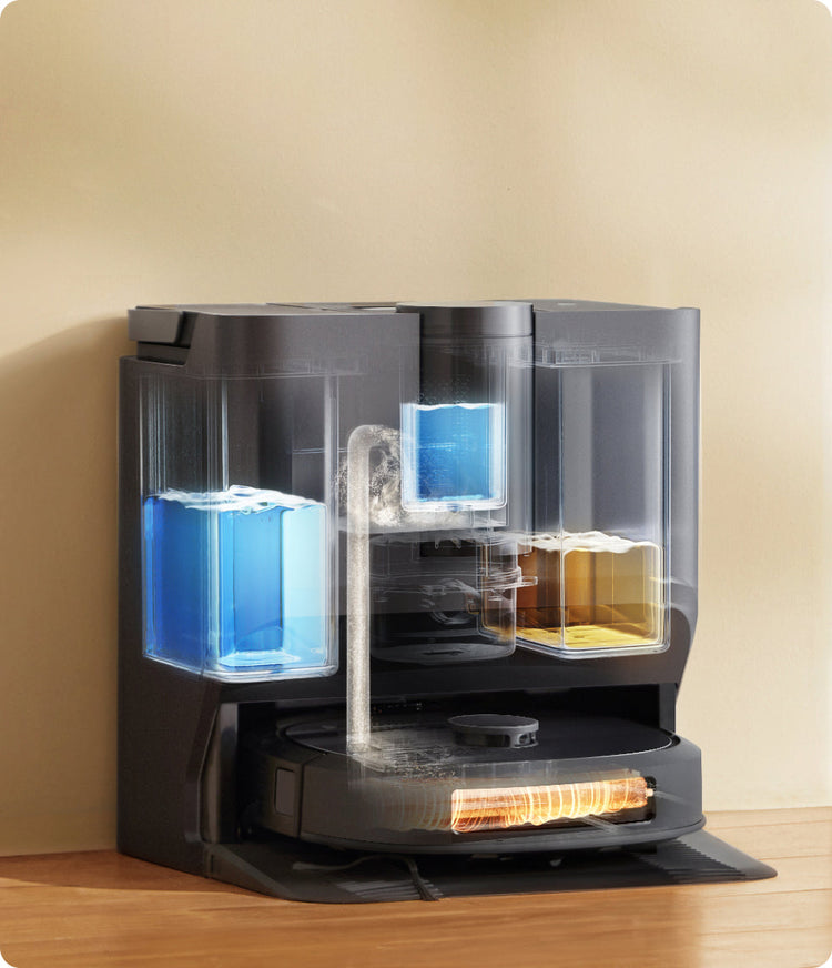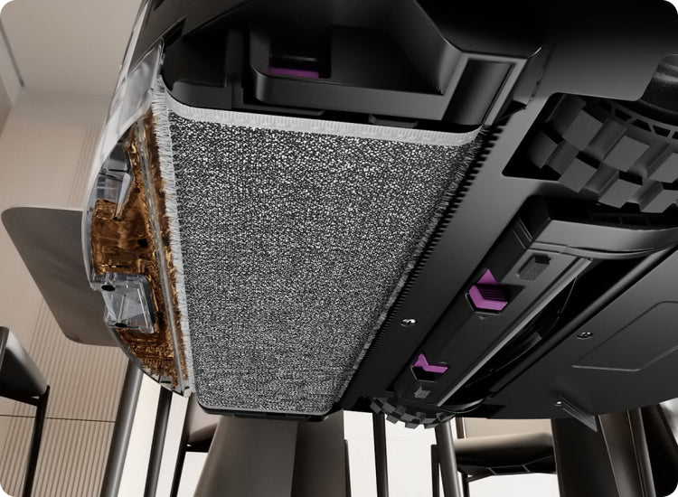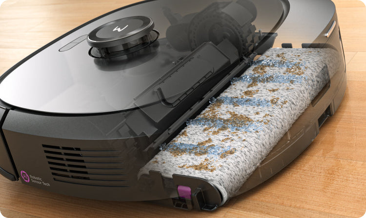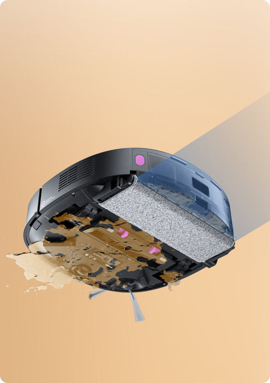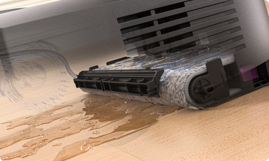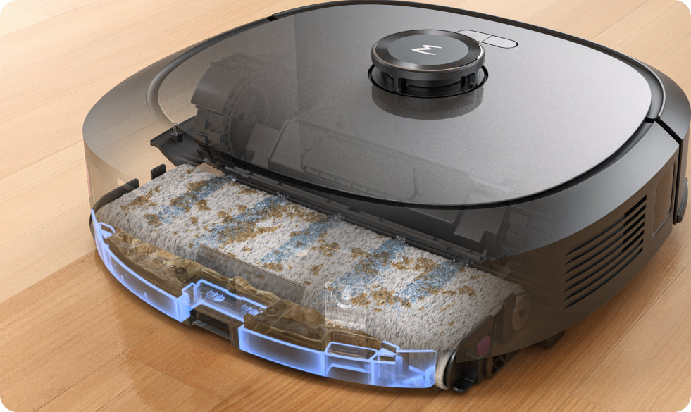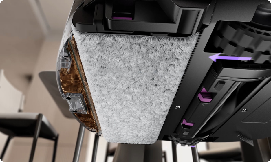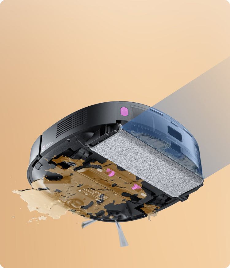 Den helt nye designen til den sykliske beltemoppen er koordinert med et robotintegrert dobbel vanntanksystem for kontinuerlig å skylle moppen, fjerne skittent vann og skrubbe gulv grundig for å gi deg en feilfri rengjøring.