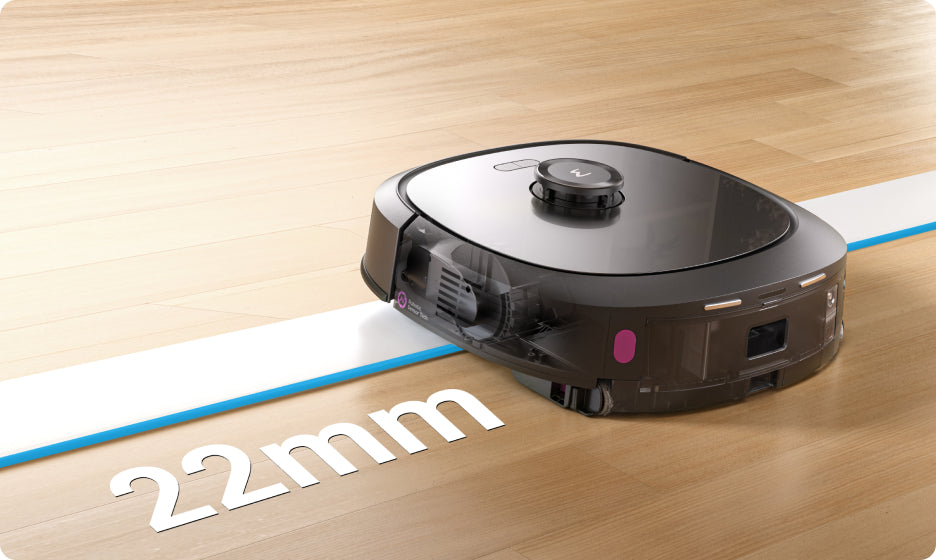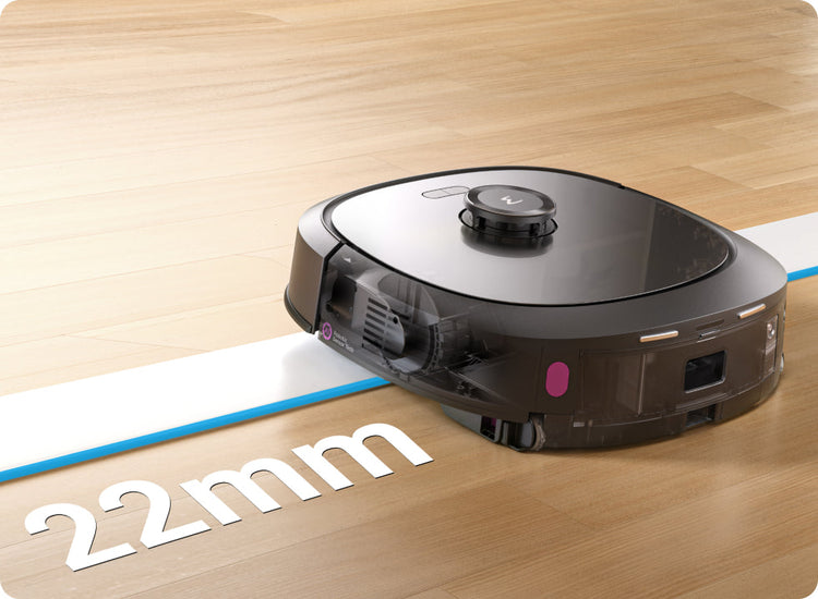 Hindringsklaringen på 22 mm sikrer at J20 pålitelig kan klatre over hindringer for å gå inn og ut av rom og automatisk rengjøre hele hjemmet ditt.