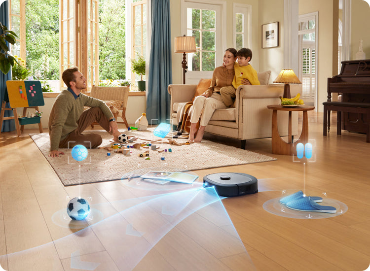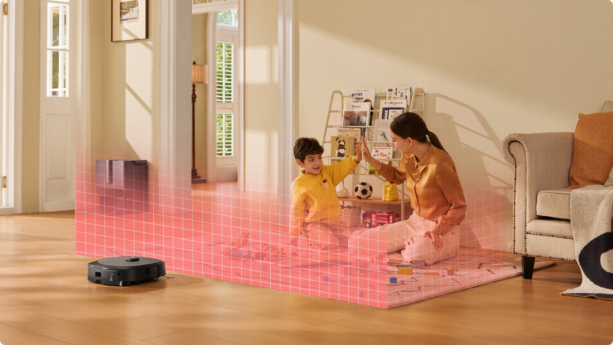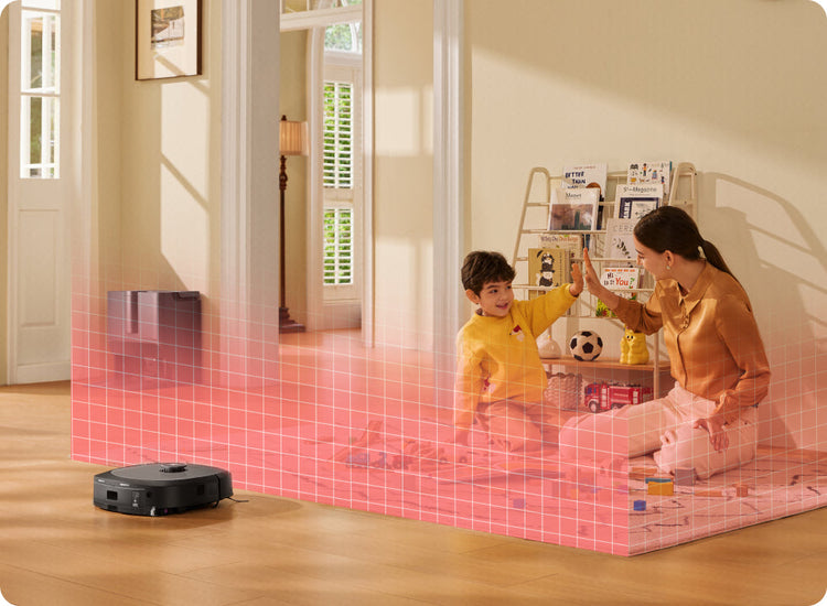 Det avanserte AI dual-view strukturerte lyset lar J20 rengjøre og navigere med utrolig effektivitet ved nøyaktig å oppdage hindringer og generere optimale baner for å unngå møbler og andre hindringer på en mye smartere og mer effektiv måte.