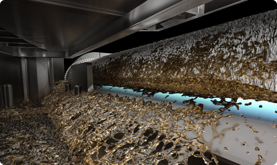Fem vanndyser strategisk plassert ved siden av moppen skyller den kontinuerlig med rent vann, noe som sikrer optimal gulvrengjøring.
