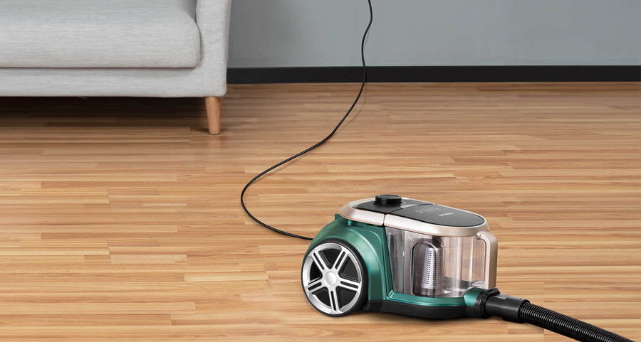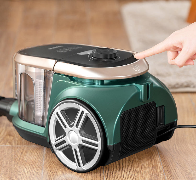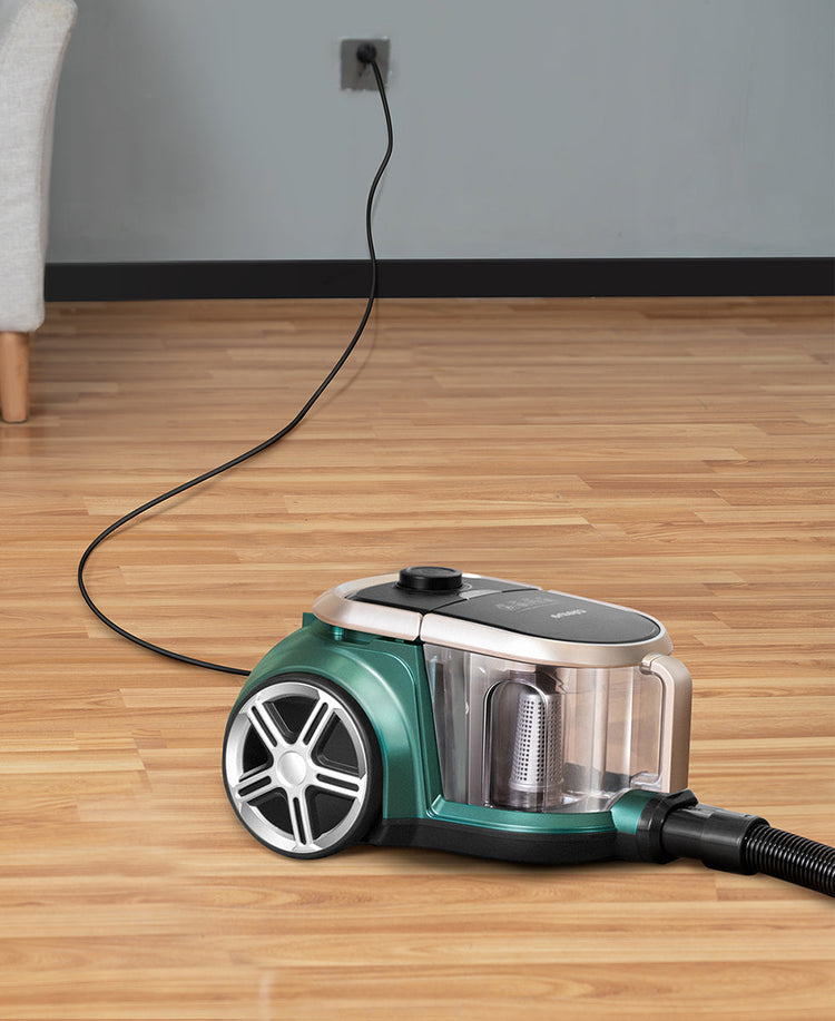 Eucha Apollo er utstyrt med en 2,2 liters støvbeholder, som lar deg rengjøre selv store leiligheter uten å måtte tømme den flere ganger.