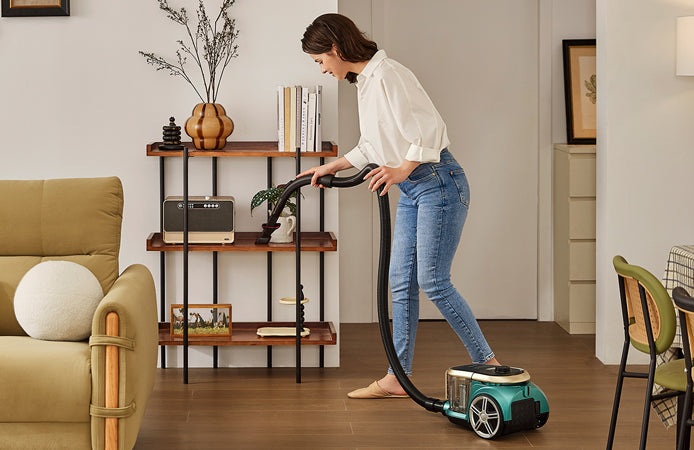Store hjul, jevn svinging, enkel manøvrerbarhet og et innebygd bærehåndtak gjør det enkelt å rengjøre hvor som helst du trenger.
