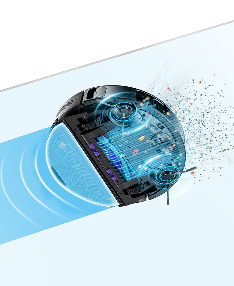 Nyt opptil 45 dager med kontinuerlig rengjøring med den høykapasitets gjennomsiktige støvbeholderen. Den poseløse designen lar deg se med et øyeblikk hvor mye skitt roboten din samler opp, slik at du vet nøyaktig når det er på tide å tømme den. Si farvel til engangsposer og hei til uanstrengt vedlikehold!