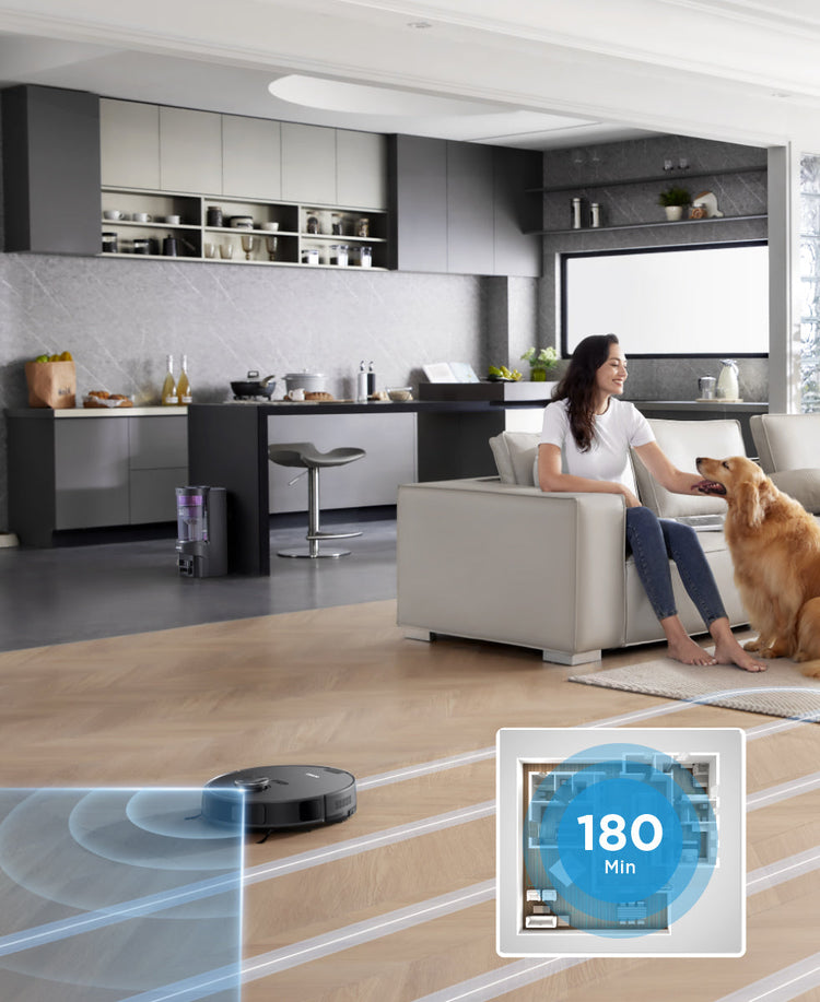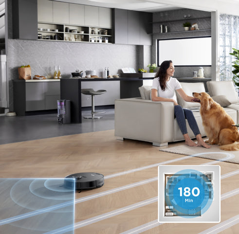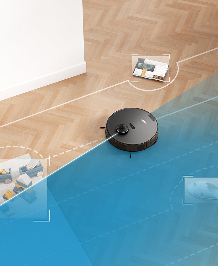 Takket være LiDAR-navigasjon, kartlegger Eureka E10s raskt hjemmet ditt og identifiserer områdene som skal rengjøres for en mer effektiv rengjøringsopplevelse.